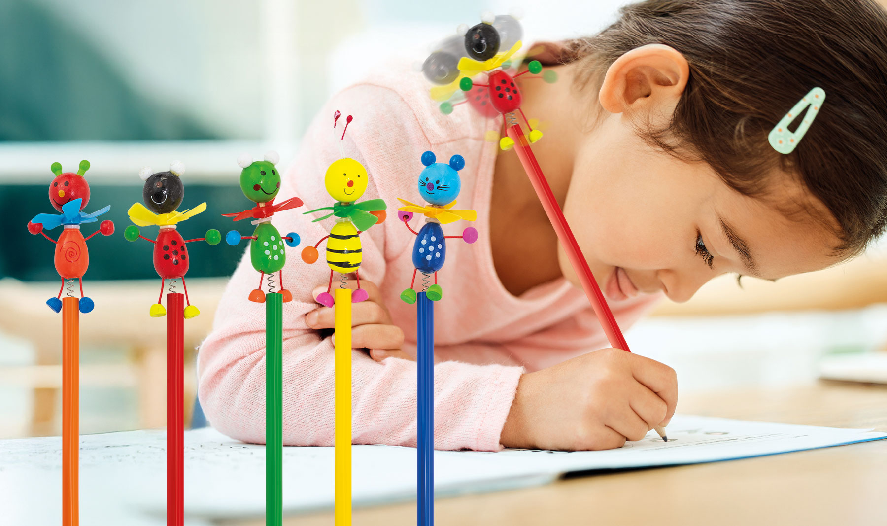 Conjunto de 5 lápis de madeira com divertidas figuras de animais articulados. O seu design colorido e original torna-os um presente perfeito para campanhas infantis ou eventos escolares.
