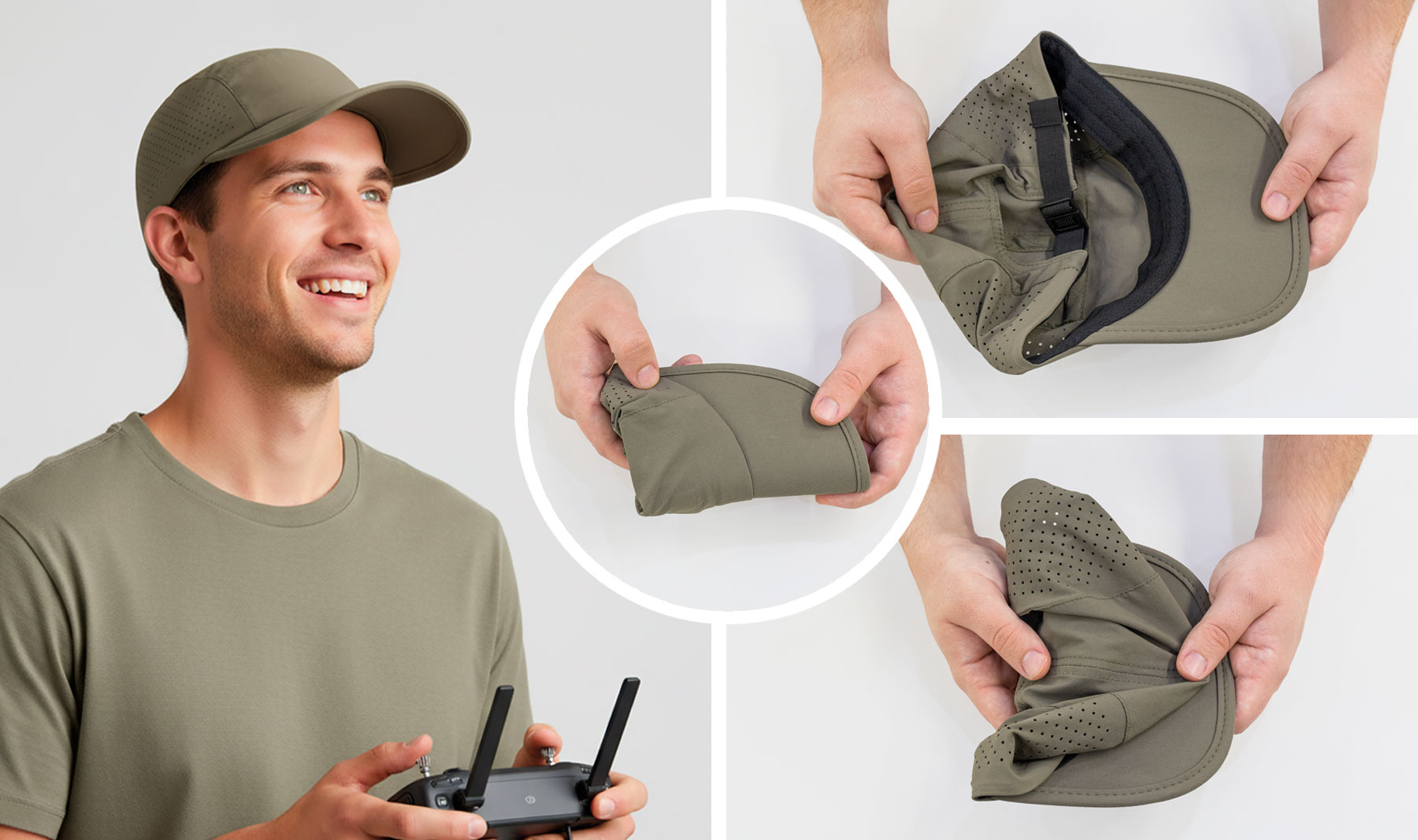 Fabricado em tecido leve e resistente. Possui painéis perfurados para melhorar a ventilação e manter a cabeça fresca durante as atividades ao ar livre.