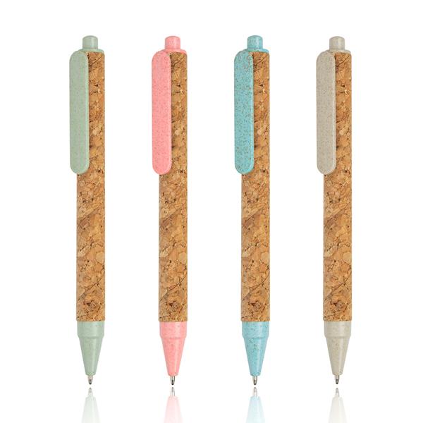 Esferográfica em cortiça e fibra de trigo, Coreat. Reduza o plástico e ofereça um brinde moderno. Esferográfica de sistema pulsar e escrita preta. Esta esferográfica torna-se ecofriendly pela junção da fibra de trigo dos detalhes e da cortiça do corpo. Faça uma aposta em prol da Natureza.