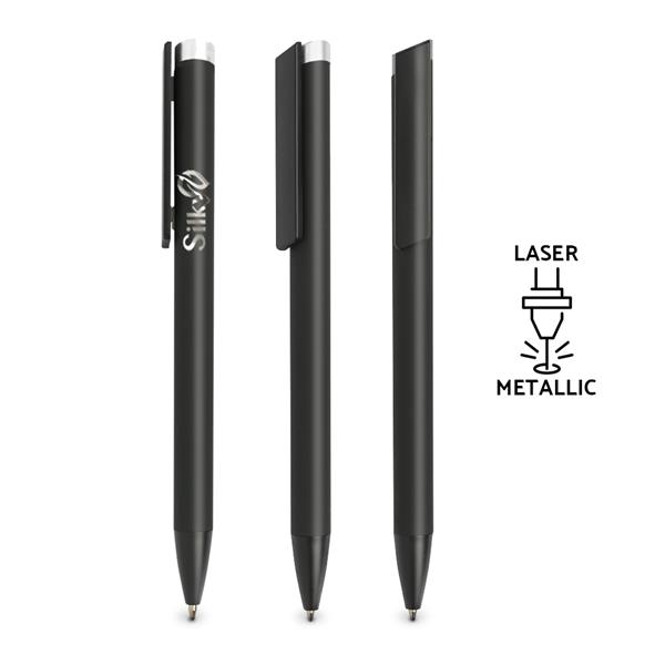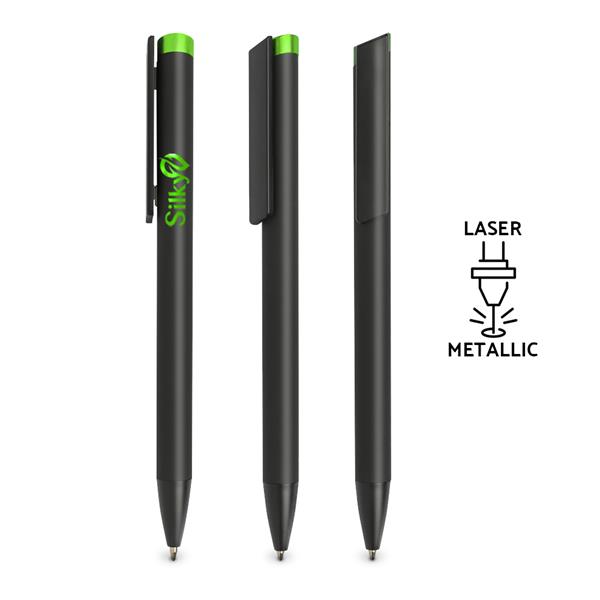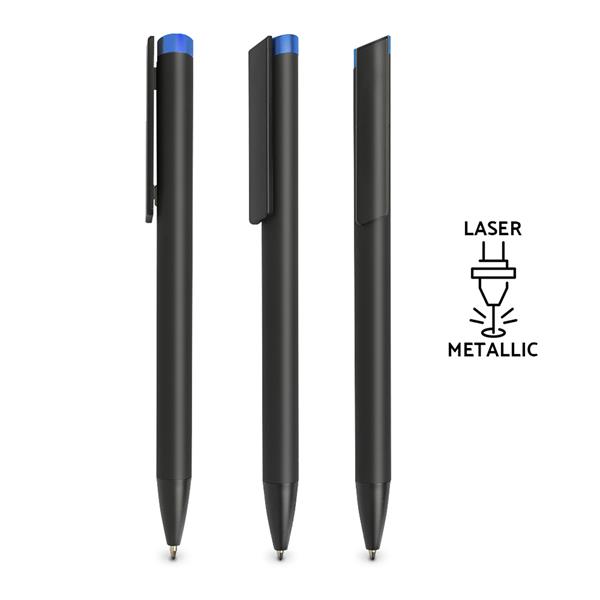Esferográfica em alumínio com toque de borracha. Escrita azul, sistema pulsar. Esferográfica com clip em plástico e topo colorido brilhante. Clip com área de destaque para gravação. Destaque a sua marca com esta caneta. Ao personalizar a laser, a gravação sai à cor do topo. Brilhante no design e na personalização. 13,5 CM