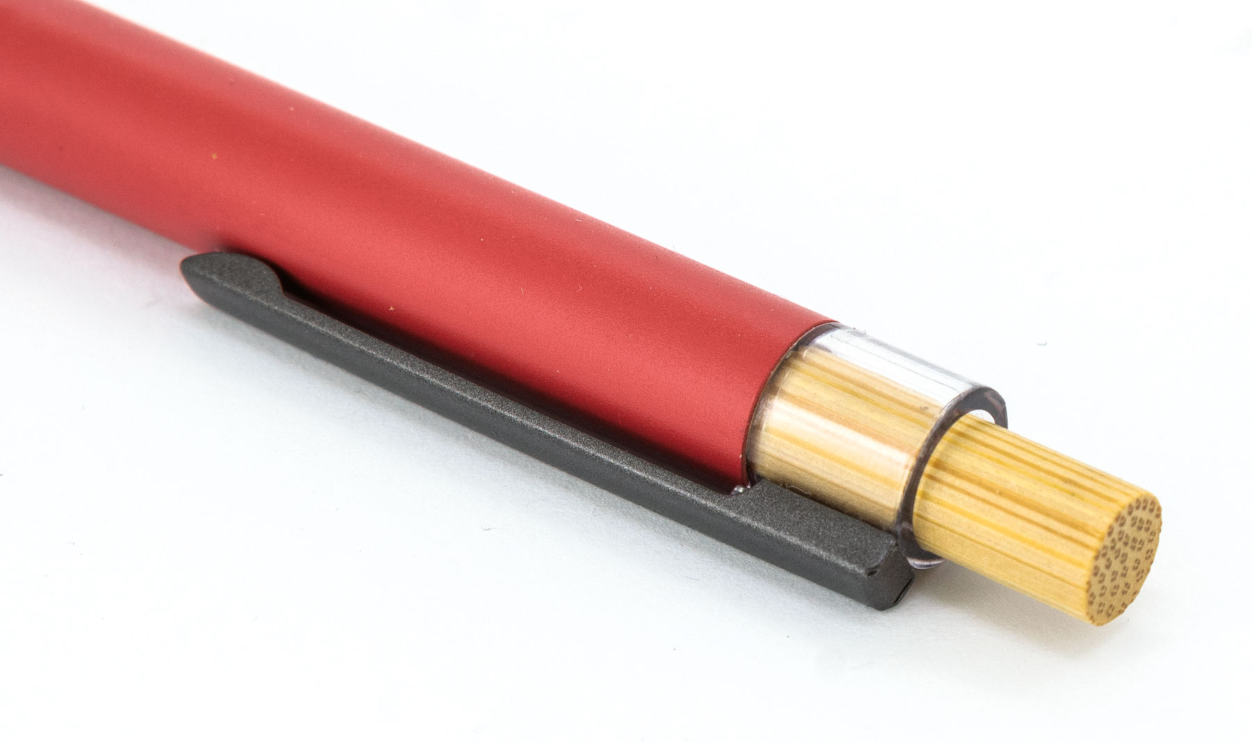 Esferográfica com corpo em alumínio com acabamento mate e botão de pressão em bambu natural. Combina estilo moderno e materiais ecológicos, perfeita para se destacar com um detalhe útil e sustentável.