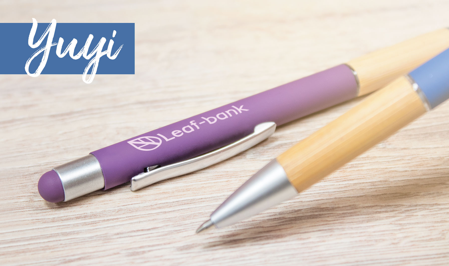 Caneta com textura Soft Effect, escrita azul.