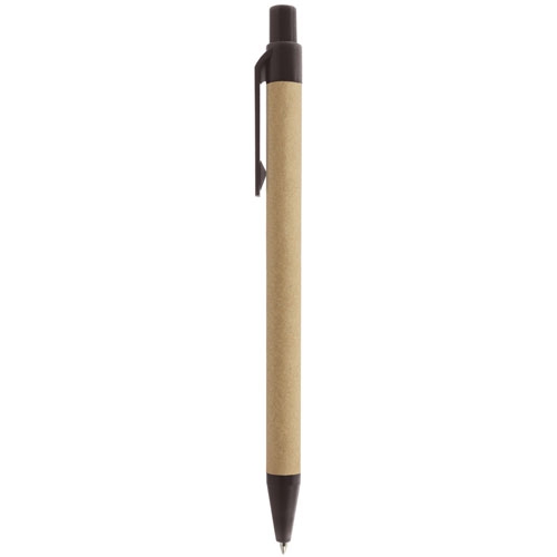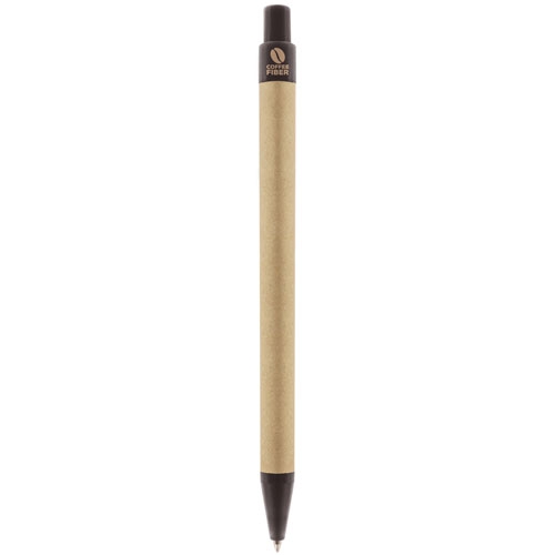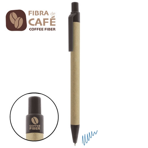 Esferográfica realizada em cartão reciclado e fibra de café, um material degradável e ressistente, realizado a partir da borra de café, dando como resultado um producto mais sustentável.