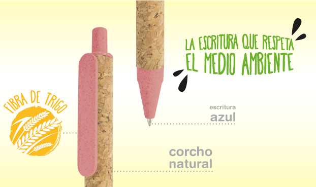 Ecológicos e respeituosos com o meio ambiente, o corpo está realizado com cartao reciclado ou cortiça e as terminaçoes em PP com fibra de trigo de cores cálidas.