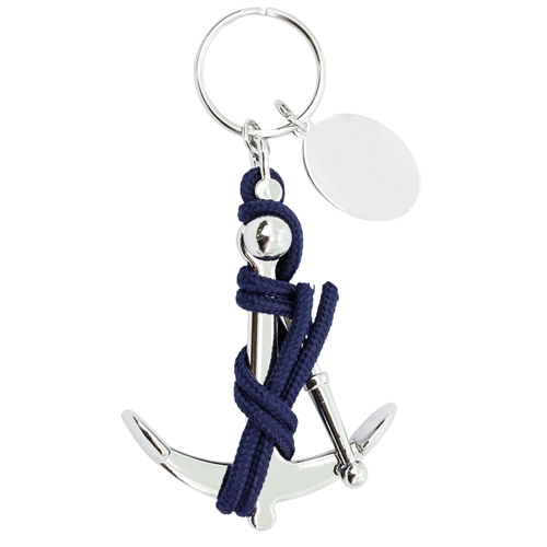 Porta-chaves com âncora de marinheiro ligada a um detalhe de corda da bandeira espanhola. Inclui uma placa para marcação a laser.
