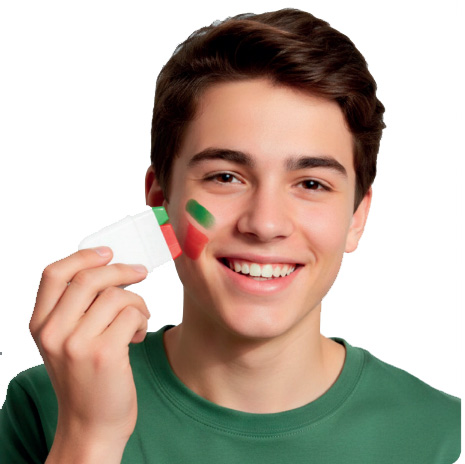 Útil e novedoso artigo desenhado para pintar caras como a bandeira portuguesa de maneira cómoda, rápida e fácil e sobre todo, limpa, já que nao tocamos as ceras directamente com a mao.
