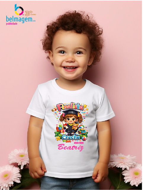 T-shirt branca 150 grs de criança c/ impressão INCLUIDA FINALISTA CRECHE