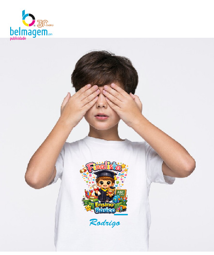 T-shirt branca 150 grs de criança c/ impressão INCLUIDA FINALISTA CRECHE