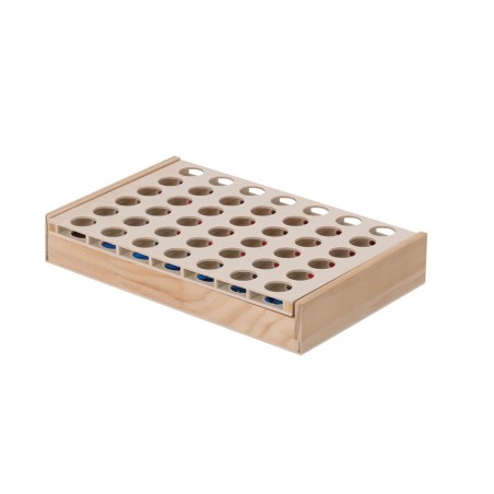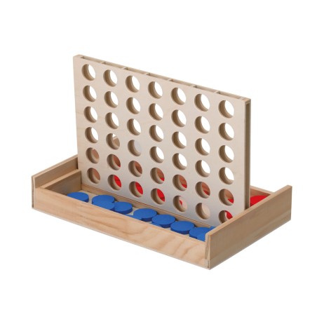 Jogo de madeira estilo quatro em linha com 42 peças, clássico e divertido, ideal para desfrutar em família e estimular a estratégia.