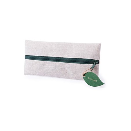 Porta lápis prático da linha Natura. Tamanho compacto, em combinação de materiais juta e algodão. Fechamento com zíper e folha de logotipo no extrator.