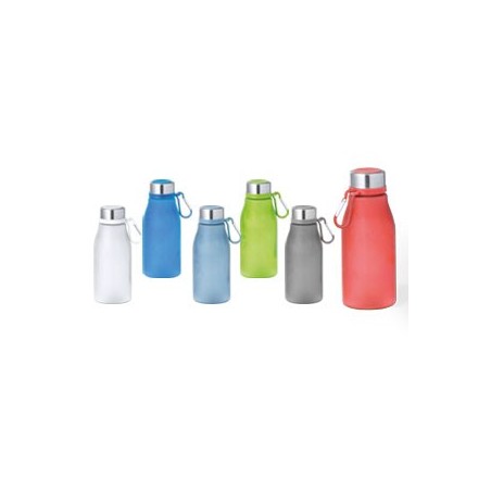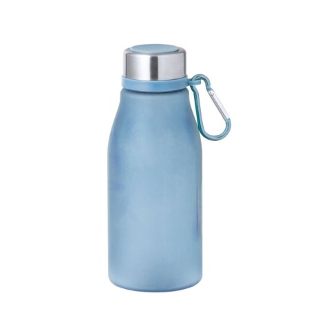 Garrafa em RPET de 370 ml de capacidade. Tampa de segurança de rosca em aço inoxidável e prático mosquetão metálico com cor a condizer com a garrafa. Disponível numa variada gama de cores sólidas em acabamento mate. Livre de BPA e apresentada numa atrativa caixa de design kraft. O material RPET é elaborado a partir de plástico reciclado, para assim fomentar a reutilização de resíduos plásticos e ajudar à sustentabilidade do planeta.
