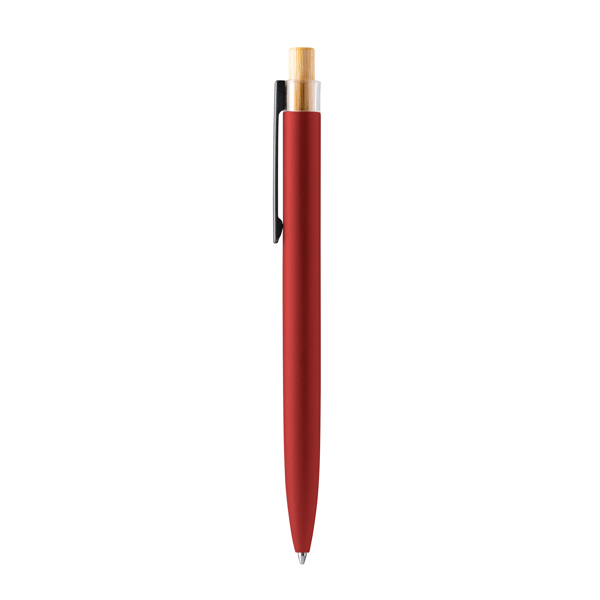 Caneta única com botão de pressão em bambu e corpo em alumínio reciclado com um elegante acabamento mate. Com um clipe cinzento mate, esta caneta combina estilo e sustentabilidade. Esta caneta utiliza uma carga jumbo de tinta azul, garantindo uma escrita suave e duradoura. Quer seja para tomar notas no escritório, escrever no diário ou assinar documentos importantes, esta caneta proporciona uma experiência de escrita excecional. Valorizamos a utilização de materiais ecológicos, como o bambu e o alumínio reciclado, no design das nossas canetas. Faça uma escolha consciente e sofisticada com a nossa caneta com botão de pressão em bambu e corpo em alumínio reciclado com acabamento mate.