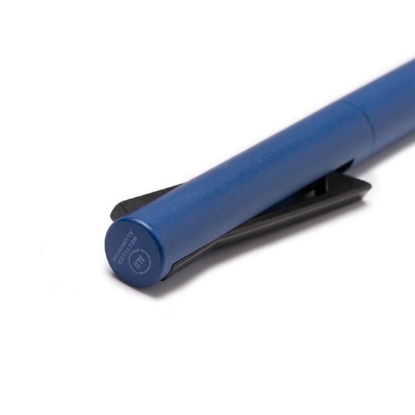 Esferográfica de clipe de pressão únicos, fabricados com um corpo em ABS reciclado e um fundo em alumínio reciclado. Concebida para oferecer uma escrita suave e confortável com tinta azul, é uma escolha sustentável e elegante para uso quotidiano. Perfeita para quem procura combinar funcionalidade com um compromisso com o ambiente.