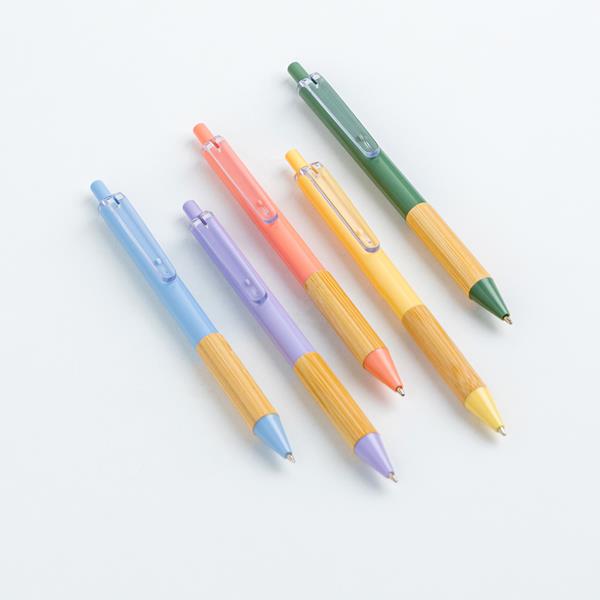 Esferográfica em ABS reciclado, com clip translúcido e acabamento em bambu na zona de pega, que combina design moderno com responsabilidade ambiental. Equipada com mecanismo de pulsar para maior praticidade, utiliza tinta preta. Perfeita para anotações, estudos ou uso profissional. Disponível em várias cores vibrantes, alia estilo, durabilidade e leveza, tornando-se uma opção prática e elegante para o dia a dia.