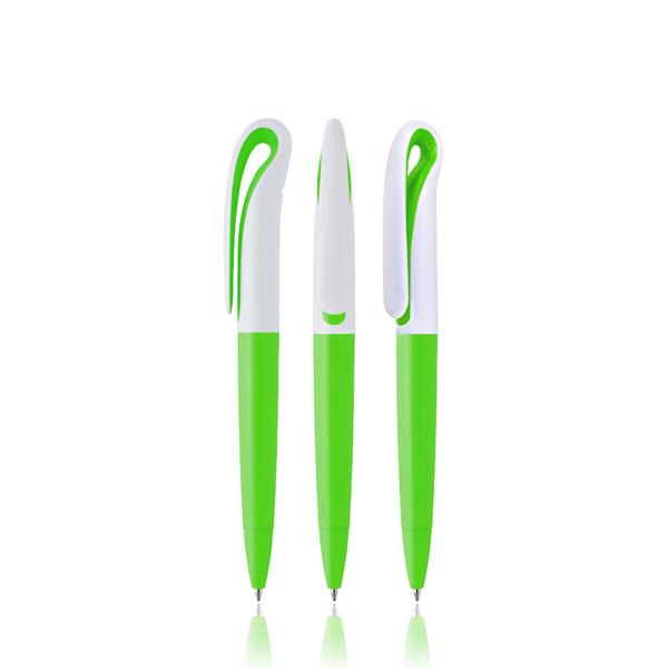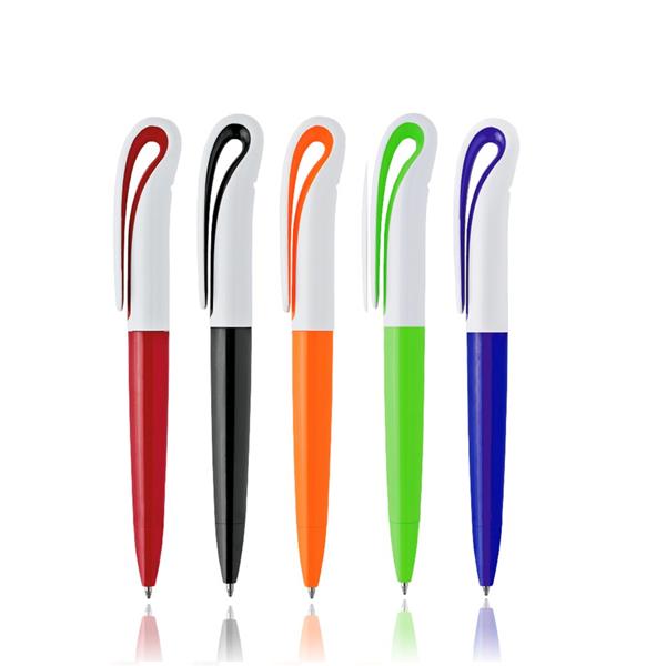Esferográfica de plástico, cisne. Escrita preta, sistema twist. Com um "design" diferente e moderno, conta com um detalhe colorido por dentro do clip. Ótima para dar o twist necessário à sua marca.