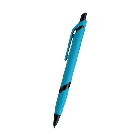 Caneta de plástico ABS fabricados em conformidade com a norma Compliant Reach, comprometendo os métodos mais seguros, com um design original de cor sólida combinado com detalhes em preto, utiliza tinta azul e está disponível em várias cores.