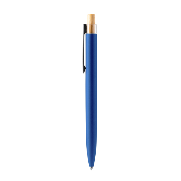Caneta única com botão de pressão em bambu e corpo em alumínio reciclado com um elegante acabamento mate. Com um clipe cinzento mate, esta caneta combina estilo e sustentabilidade. Esta caneta utiliza uma carga jumbo de tinta azul, garantindo uma escrita suave e duradoura. Quer seja para tomar notas no escritório, escrever no diário ou assinar documentos importantes, esta caneta proporciona uma experiência de escrita excecional. Valorizamos a utilização de materiais ecológicos, como o bambu e o alumínio reciclado, no design das nossas canetas. Faça uma escolha consciente e sofisticada com a nossa caneta com botão de pressão em bambu e corpo em alumínio reciclado com acabamento mate.